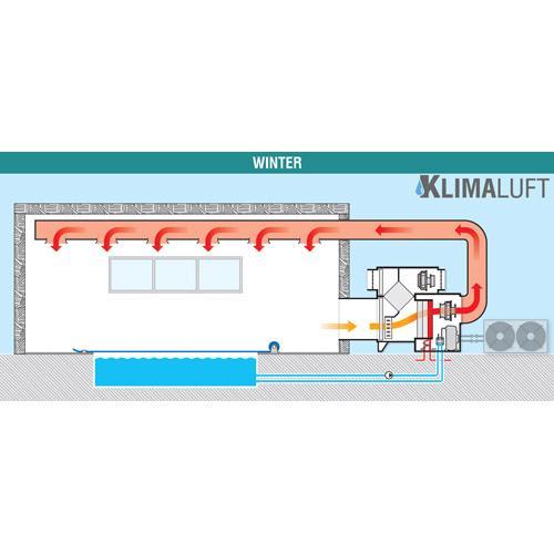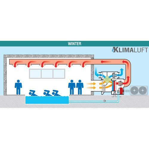 KLIMALUFT 0300 (SPR) Schwimmbad-Luftentfeuchter ist Teil der SPR-Reihe und in verschiedenen Modellen erhältlich. Die Luftentfeuchter der SPR-Reihe sind ideal für Schwimmbäder oder Wellness-Bereiche, die nicht nur entfeuchtet, sondern auch belüftet werden müssen, ohne dass die Wärme nach außen abgegeben wird. Das hocheffiziente Wärmerückgewinnungssystem garantiert eine Leistung von bis zu 80 %! KLIMALUFT 0300 (SPR) ist ein 2-in-1 Gerät mit einer Entfeuchtungsleistung von 302 Liter/Tag und einem Luftdurchsatz von 2.800 m³/h. Luftentfeuchter mit hoher Luftwechselrate. KLIMALUFT STR-Reihe wurde speziell für die Klimatisierung des Schwimmbadbereichs konzipiert - reguliert und kontrolliert nicht nur die Luftfeuchtigkeit, sondern auch die Umgebungstemperatur.
